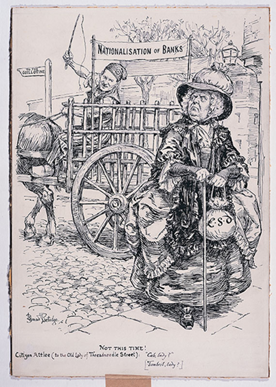 This cartoon was published in Punch magazine in 1935. It refers to Labour leader Clement Attlee’s desire to nationalise the Bank of England.
