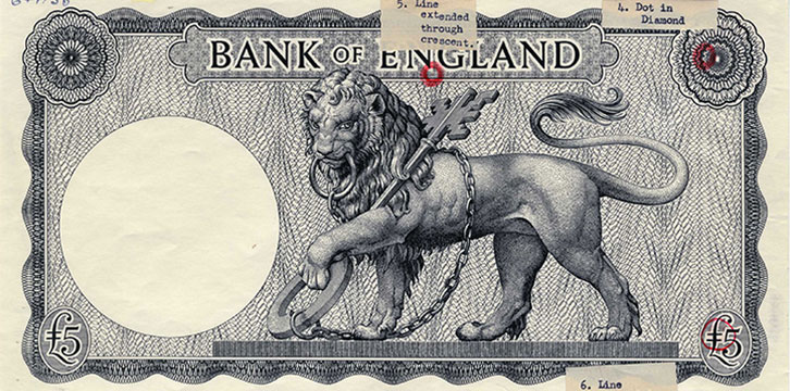 The Bank of England has produced banknotes since the late 1600s. Our collection includes examples of every note we’ve ever made. We also hold artwork by historic banknote designers, machinery and equipment relating to banknote production and examples of counterfeit and imitation notes. It is the largest collection of Bank of England notes and associated material in the world.