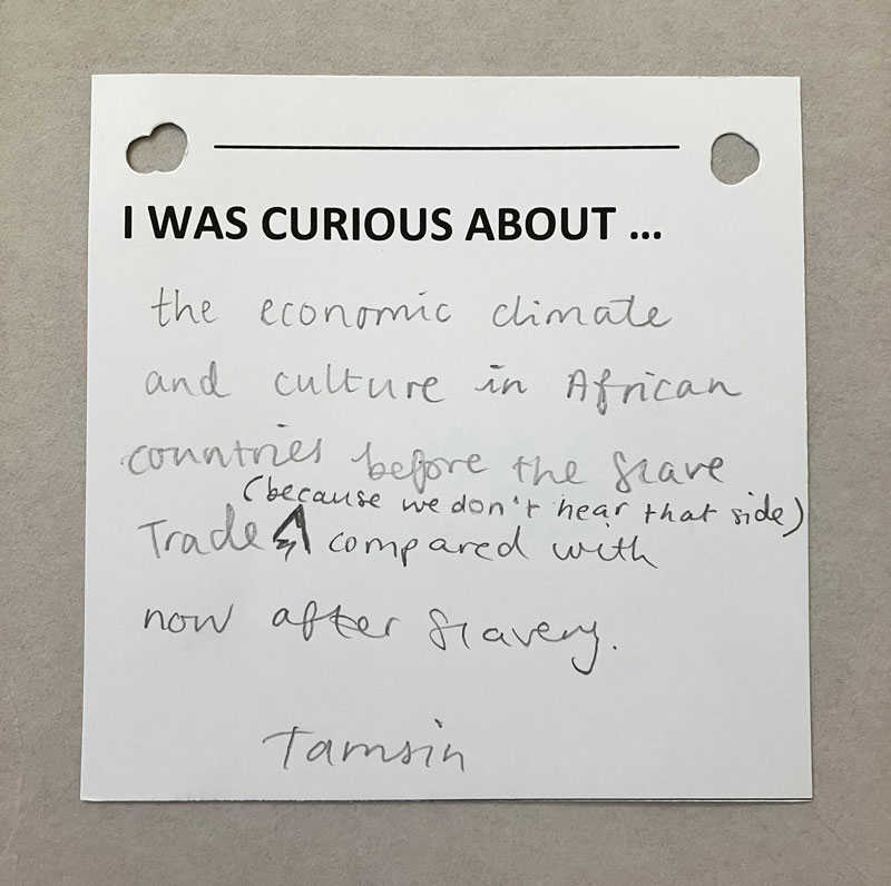 We’ve had meaningful and insightful conversations with visitors throughout the run of the exhibition – on social media, at events and through conversations in the gallery. One of the main ways we’ve heard from you was in the Museum itself through visitor response cards. There are five different prompts to choose from and below are some examples of the comments we’ve had for each: