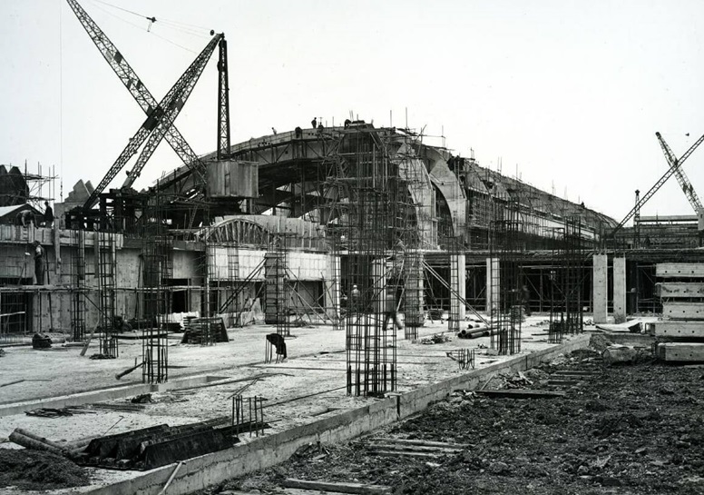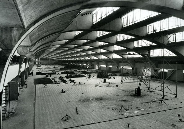 They used reinforced concrete to create a high, arched ceiling for the main hall. The roof didn’t need supporting pillars so there was more space for the production line.