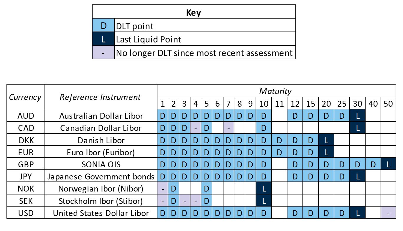 In the absence of an active swap market in an alternative RFR at longer tenors, the RFRs for JPY will be based on Japanese government bonds from January 2022. When determining the DLT maturities for JPY, the PRA considered the judgement of the International Association of Insurance Supervisors that, for the Insurance Capital Standard Technical Specification, the Last Observed Term (which is an equivalent concept to the Last Liquid Point) for JPY should be 30 years.